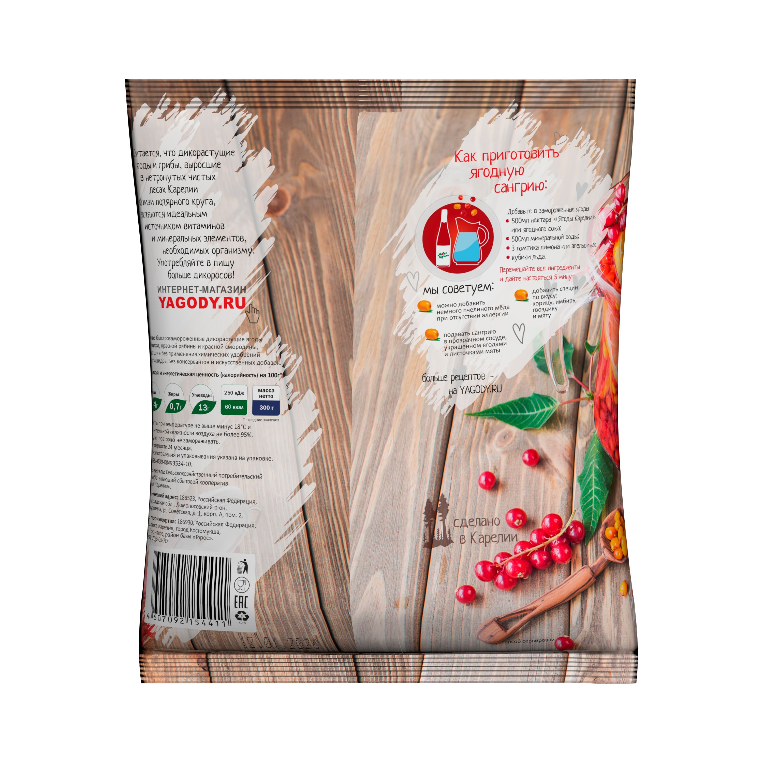 Изготовитель: Сельскохозяйственный потребительский перерабатывающий сбытовой кооператив «Ягоды Карелии».