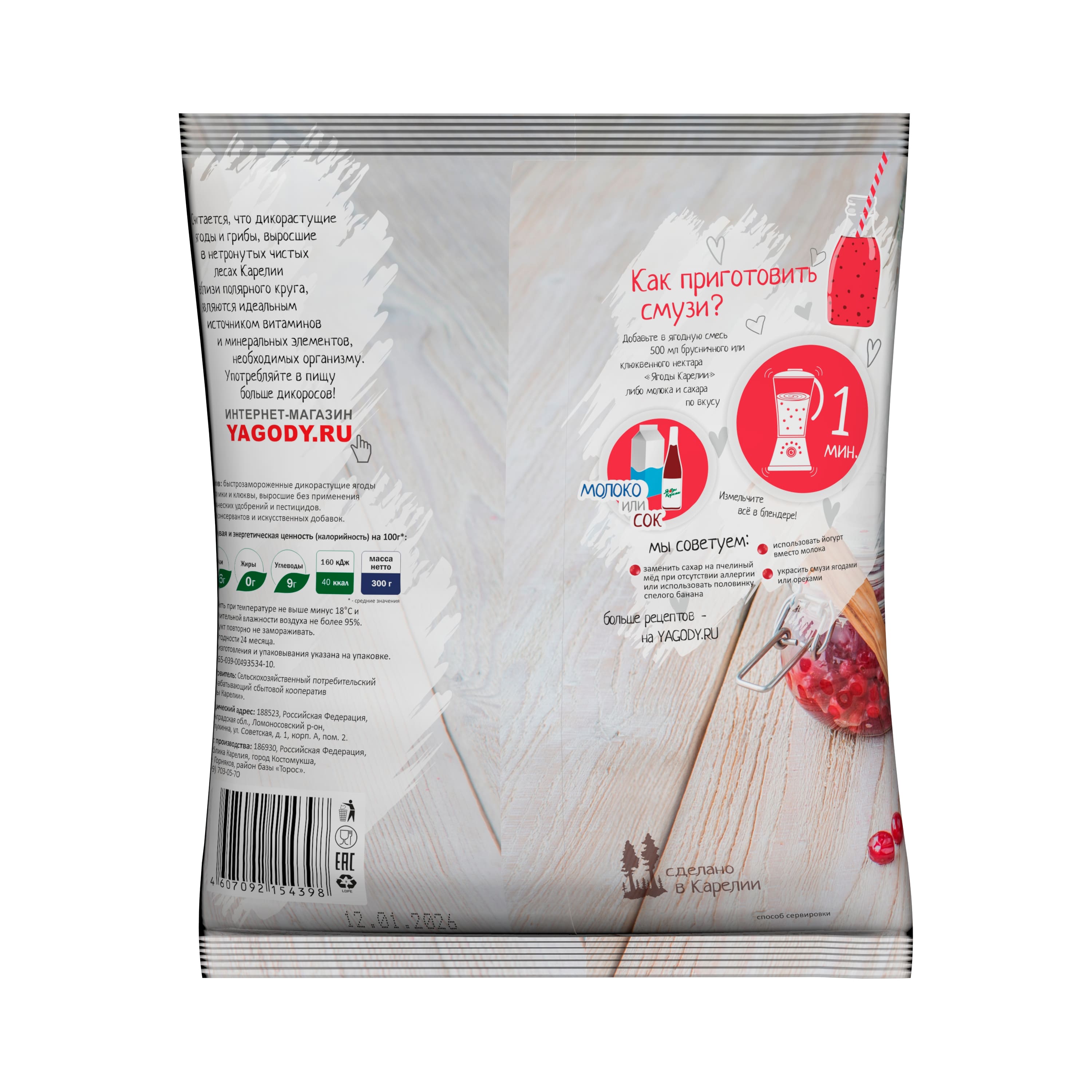 Изготовитель: Сельскохозяйственный потребительский перерабатывающий сбытовой кооператив «Ягоды Карелии».